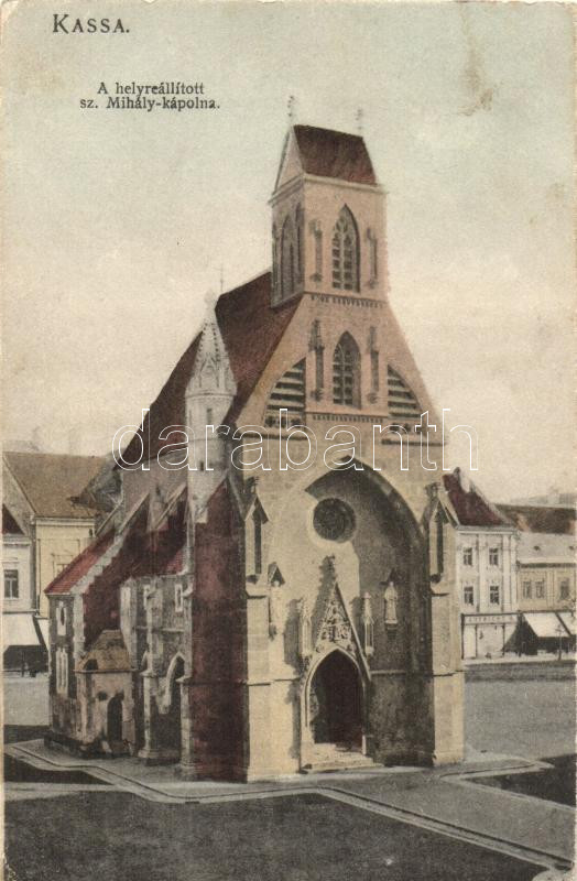 Leírás: Kassa, Kosice; A helyreállított Szent Mihály kápolna, kiadja Divald K. Fia / chapel (EK)