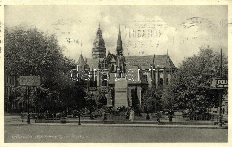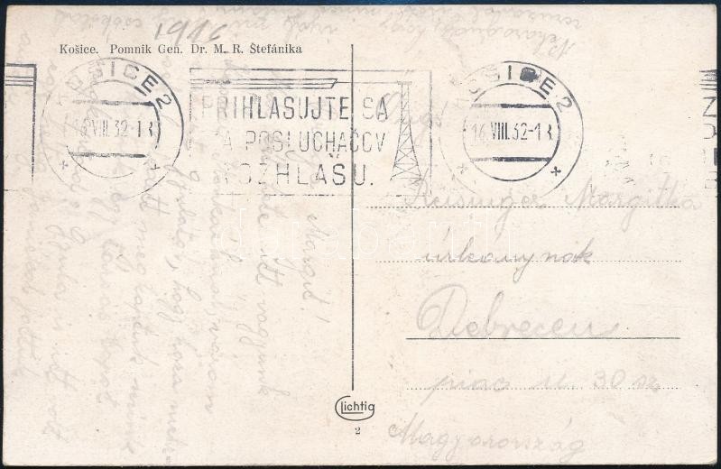 Leírás: Kassa, Stefánik szobor, reklámok / Pomnik Generala Dr. M. R. .Stefanika / statue