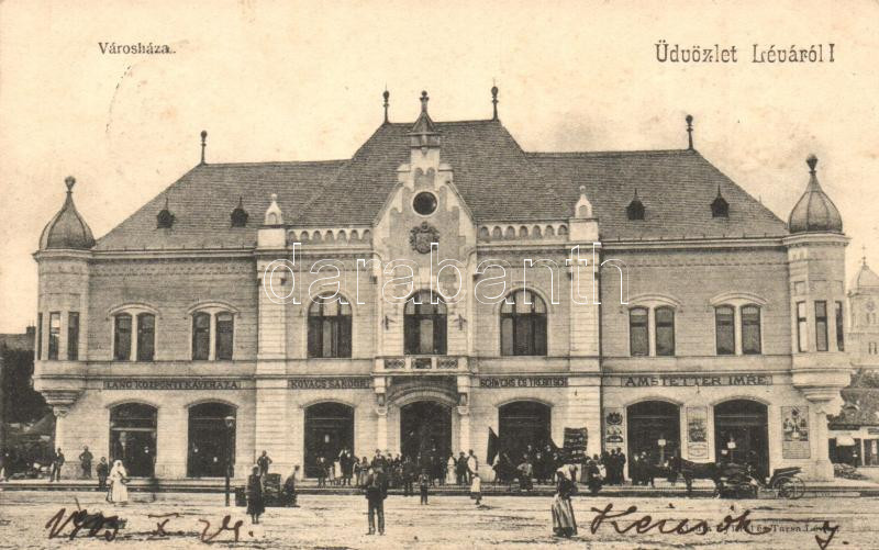 Léva, Levice; Városháza, Amstetter Imre, Schweihs és Trebitsch és Ková... https://www.darabanth.com/hu/271-Gyorsarveres/271.0/Kepeslapok/Felvidek~200008/Leva-Levice-Varoshaza-Amstetter-Imre-Schweihs-es-Trebitsch-es-Kovacs-Sandor-uzlete-Lang~II1377956