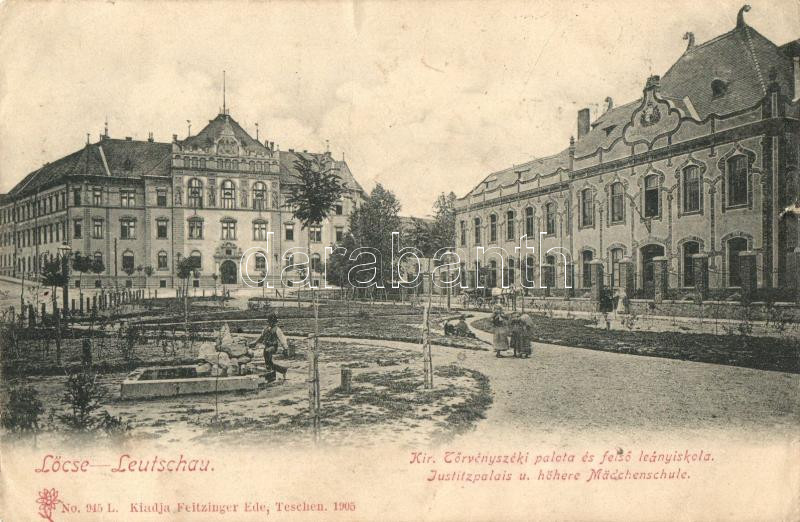 Leírás: Lőcse, Levoca, Leutschau; Törvényszéki palota, Felső leányiskola, Feitzinger Ede No. 945 L. / Palace of Forensic, girl school (b)