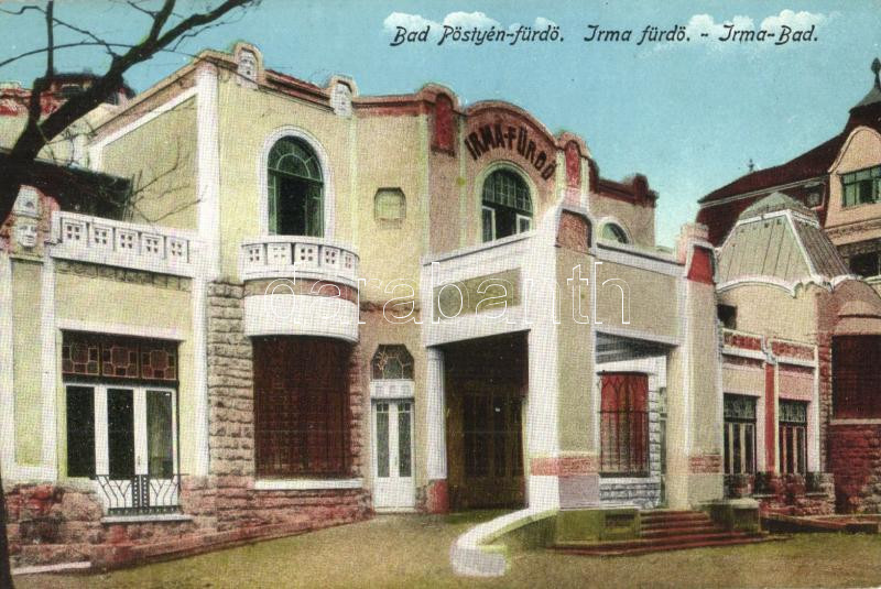 Pöstyén, Piestany; Irma fürdő, Donáth Lipót kiadása / spa https://www.darabanth.com/hu/271-Gyorsarveres/271.0/Kepeslapok/Felvidek~200008/Postyen-Piestany-Irma-furdo-Donath-Lipot-kiadasa-spa~II1379809