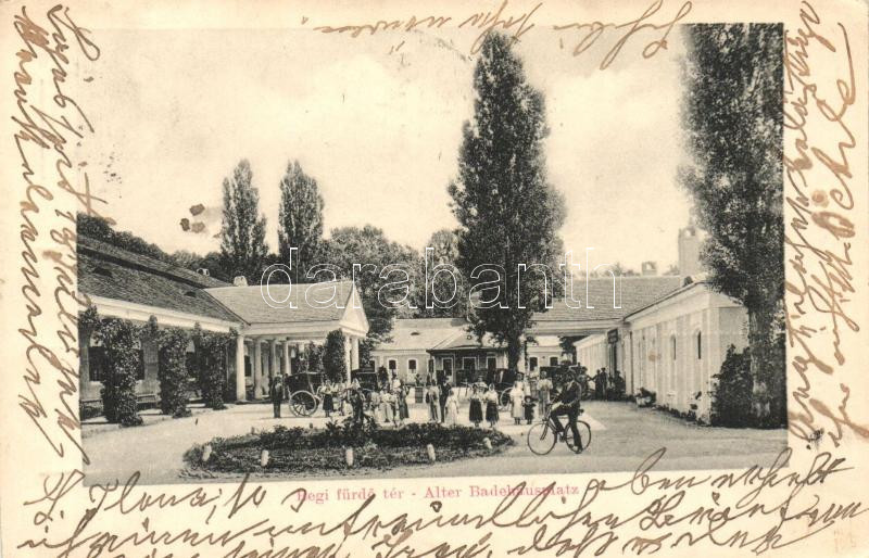 Leírás: Pöstyén, Piestany; Régi fürdő tér / old spa square (vágott / cut)
