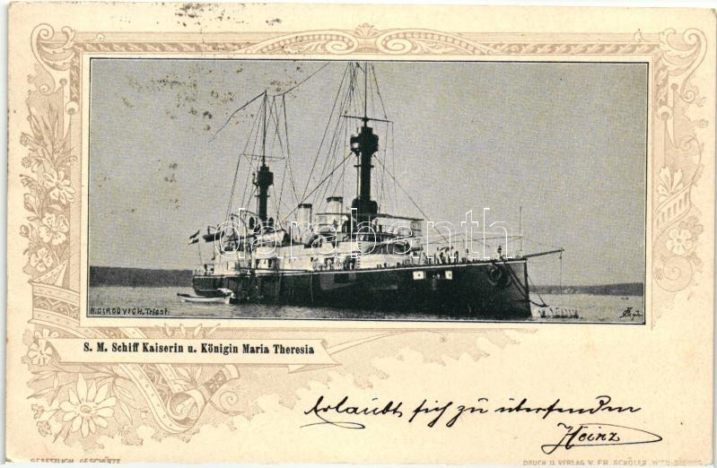 1898 SMS Kaiserin und Königin Maria Theresia az Osztrák-Magyar Monarchia haditengerészetének egyik páncélos cirkálója / SMS Kaiserin und Königin Maria Theresia, Fr. Schöler floral