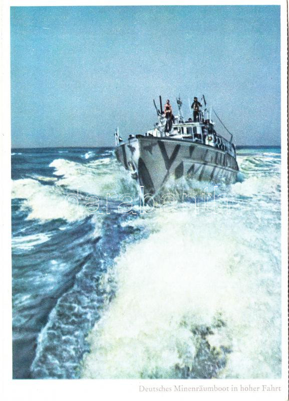 Deutsches Minenräumboot in hoher Fahrt / WWII German minesweeper (EK) https://www.darabanth.com/hu/271-Gyorsarveres/271.0/Kepeslapok/Hadihajo~200087/Deutsches-Minenraumboot-in-hoher-Fahrt-WWII-German-minesweeper-EK~II1076146