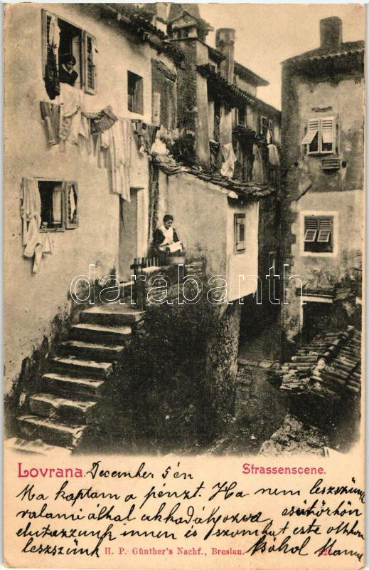1899 Lovran, Lovrana; Strassenscene / street view, houses (wet corner) https://www.darabanth.com/hu/271-Gyorsarveres/271.0/Kepeslapok/Horvatorszag-Delvidek~200010/1899-Lovran-Lovrana-Strassenscene-street-view-houses-wet-corner~II1372168