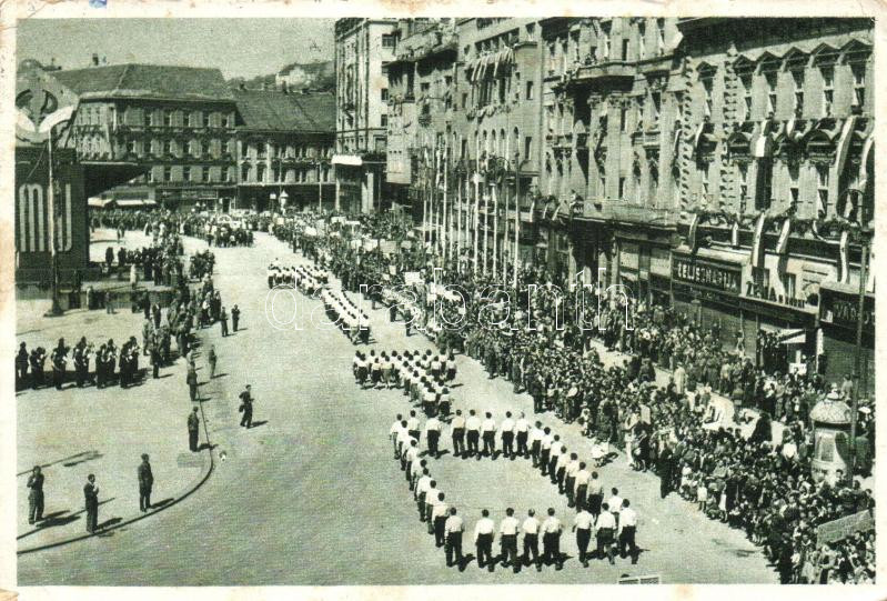 1946 Zagreb, Parada fiskulturnika / Parade of Physical Culture (EK) https://www.darabanth.com/hu/271-Gyorsarveres/271.0/Kepeslapok/Horvatorszag-Delvidek~200010/1946-Zagreb-Parada-fiskulturnika-Parade-of-Physical-Culture-EK~II1369830