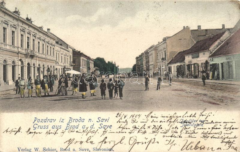 Leírás: Bród, Brod na Savi; Jelasic tér, kiadja W. Schier / square (EK)