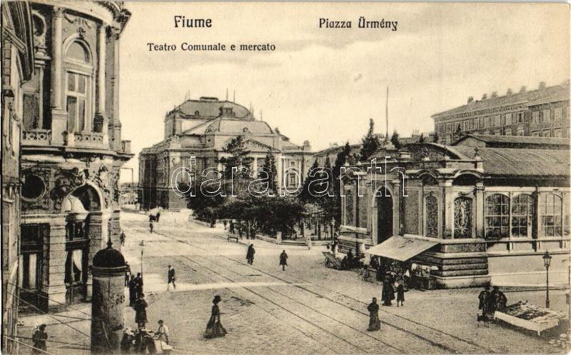 Leírás: Fiume, Ürmény tér, Városi színház / Piazza Ürmény, Teatro Comunale e mercato / square, theatre (EK)