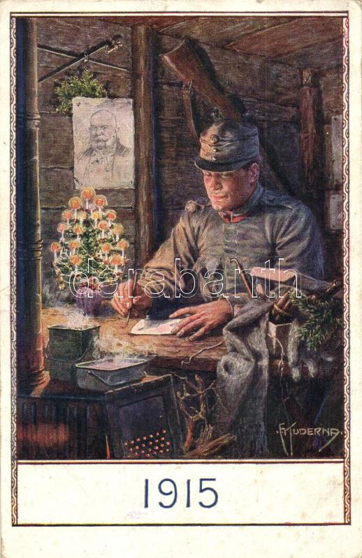 Leírás: A K.u.K. hadsereg katonája 1915 karácsonyán, Ferenc József / Soldier of the Austro-Hungarian Army in Christmas 1915, Franz Joseph s: Kuderna (EK)