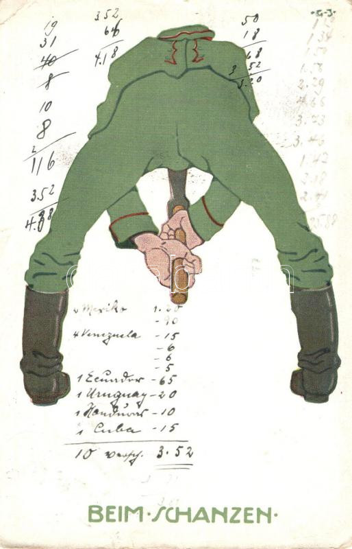 Leírás: Beim Schanzen, Feldpostkarte zur Unterstuetzung der Hinterbliebenen des R.I.R. 120. / WWI German military humour (b)