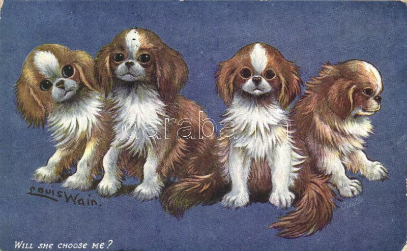 'Will she choose me?' dogs, Raphael Tuck & Sons, Oilette... https://www.darabanth.com/hu/271-Gyorsarveres/271.0/Kepeslapok/Kutya~200064/Will-she-choose-me-dogs-Raphael-Tuck-Sons-Oilette-No-9501-s-Louis-Wain~II1374030