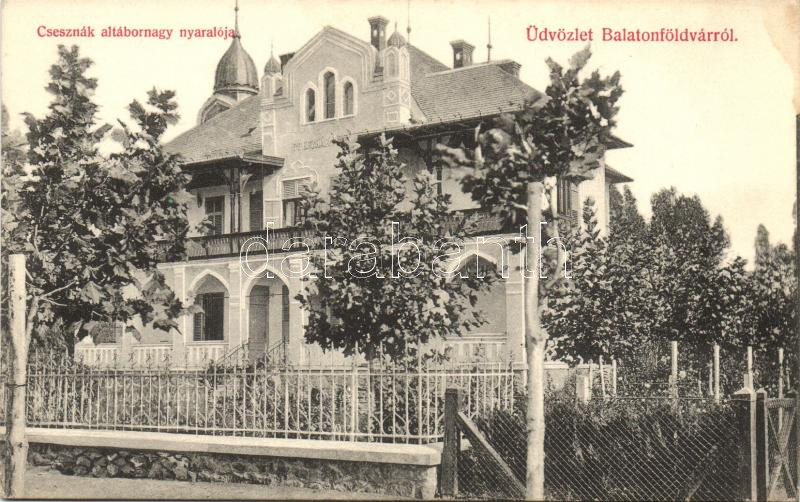 Balatonföldvár, Csesznák altábornagy nyaralója; Gerendai Gyula kiadása https://www.darabanth.com/hu/271-Gyorsarveres/271.0/Kepeslapok/Magyarorszag~200006/Balatonfoldvar-Csesznak-altabornagy-nyaraloja-Gerendai-Gyula-kiadasa~II1368634