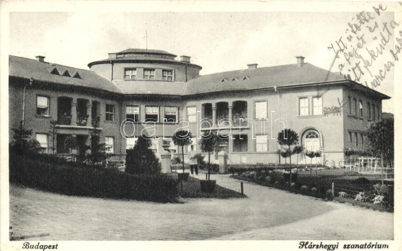 Budapest II. Hűvösvölgy, Hárshegyi szanatórium https://www.darabanth.com/hu/271-Gyorsarveres/271.0/Kepeslapok/Magyarorszag~200006/Budapest-II-Huvosvolgy-Harshegyi-szanatorium~II1371140