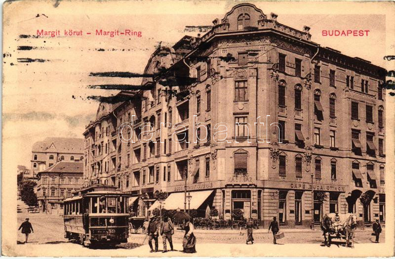 Leírás: Budapest II. Margit körút, villamos, Budai Otthon Kávéház (EK)