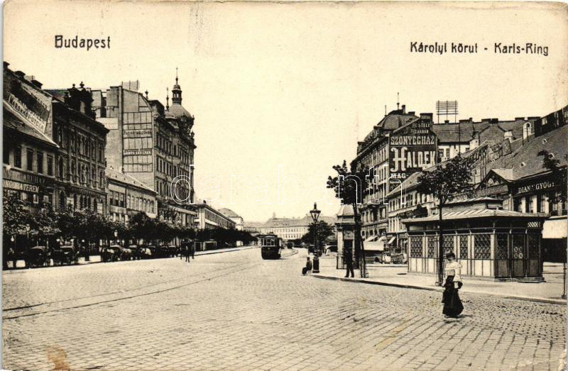 Budapest V. Károlyi körút, Spitzer Miksa és Haldek üzlete, Diana Gyógy... https://www.darabanth.com/hu/271-Gyorsarveres/271.0/Kepeslapok/Magyarorszag~200006/Budapest-V-Karolyi-korut-Spitzer-Miksa-es-Haldek-uzlete-Diana-Gyogyszertar-villamos-EK~II1375946