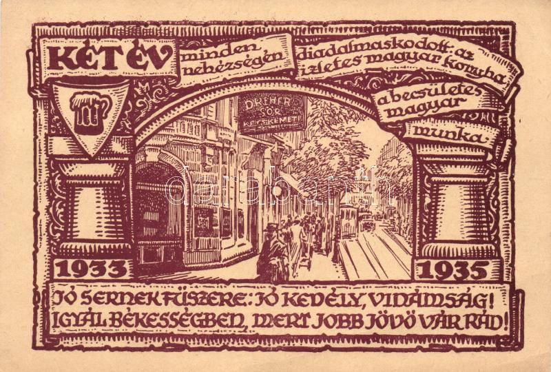 Leírás: Budapest V. Kollár Anna Mária Kecskeméti Sörözője 2 éves, reklámlap; Kecskeméti utca 14. (EK)