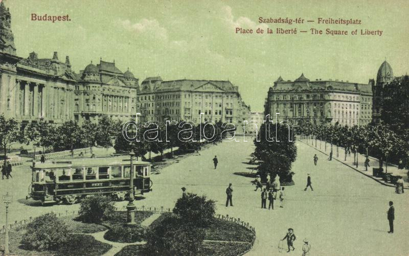 Budapest V. Szabadság tér, villamos (vágott / cut)