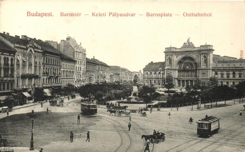 Budapest VII. Keleti pályaudvar, Baross tér, villamosok https://www.darabanth.com/hu/271-Gyorsarveres/271.0/Kepeslapok/Magyarorszag~200006/Budapest-VII-Keleti-palyaudvar-Baross-ter-villamosok~II1378199