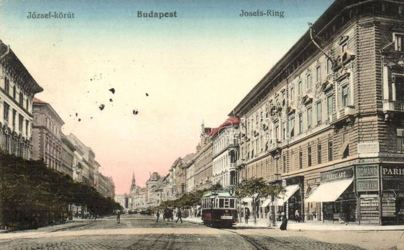 Budapest VIII. József körút, 6-os villamos, Buday Imréné üzlete, Páris... https://www.darabanth.com/hu/271-Gyorsarveres/271.0/Kepeslapok/Magyarorszag~200006/Budapest-VIII-Jozsef-korut-6-os-villamos-Buday-Imrene-uzlete-Parisi-Aru-Mosberger-Jano~II1376196