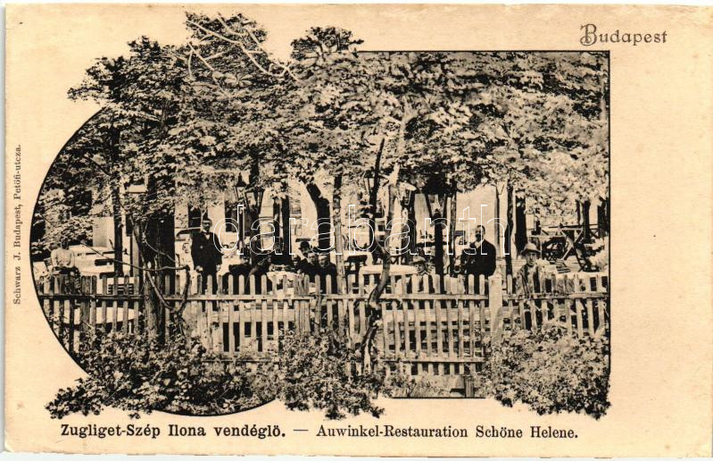 Leírás: Budapest XII. Zugliget, Szép Ilona vendéglő, kerthelyiség, kiadja Schwarz J. (r)