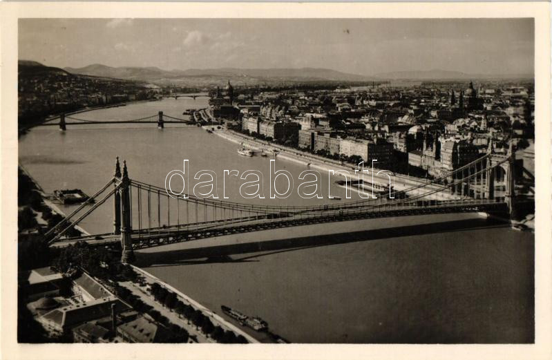 Budapest, látkép az Erzsébet híddal és két dunai fauszodával https://www.darabanth.com/hu/271-Gyorsarveres/271.0/Kepeslapok/Magyarorszag~200006/Budapest-latkep-az-Erzsebet-hiddal-es-ket-dunai-fauszodaval~II1340334