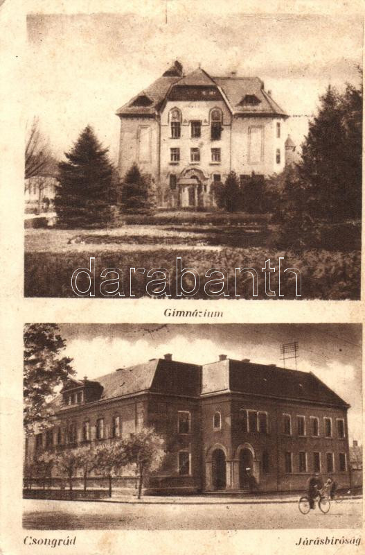 Leírás: Csongrád, Gimnázium, Járásbíróság, kiadja Özv. Horvárhné (EB)