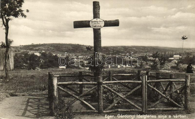 Eger, Gárdonyi Géza ideiglenes sírja a várban (fa)