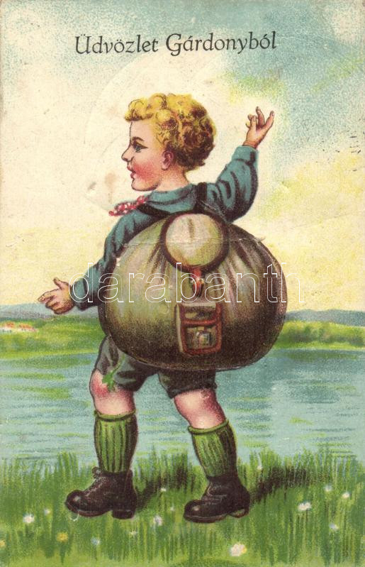Gárdony, túrázó kisfiú leporellolap, litho (EK)