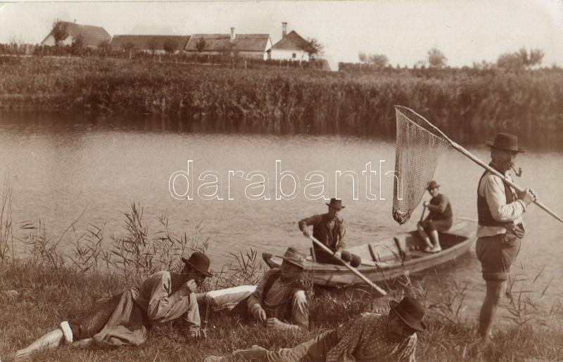 Leírás: Harka, Vajjér, halászok csónakkal és hálóval, photo