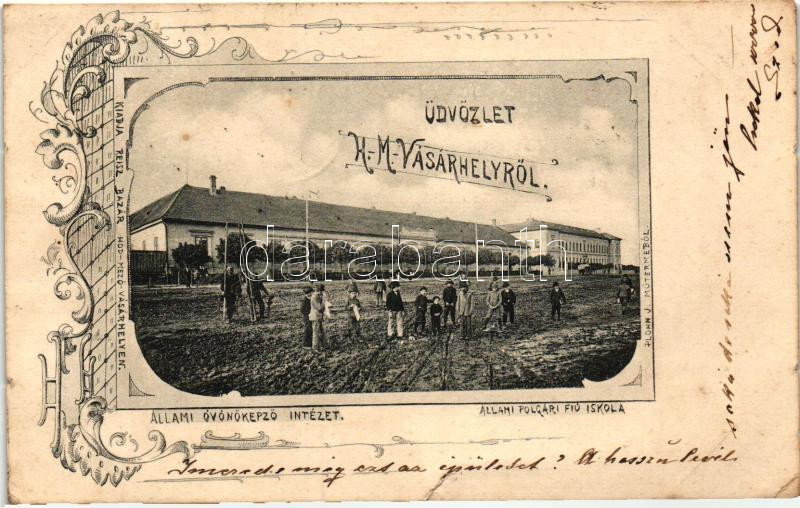 Leírás: Hódmezővásárhely, Állami Óvónőképző Intézet, Plohn J. műterméből kiadja Reisz Bazár, Art Nouveau (b)