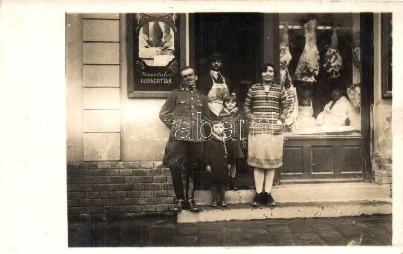 Ismeretlen város, Húsbolt, katona, photo (fl) https://www.darabanth.com/hu/271-Gyorsarveres/271.0/Kepeslapok/Magyarorszag~200006/Ismeretlen-varos-Husbolt-katona-photo-fl~II1378305