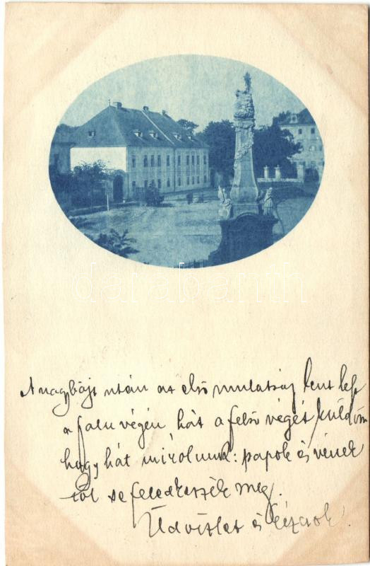 Leírás: Kalocsa, Szentháromság tér és szobor, Kanonok háza (vágott / cut)