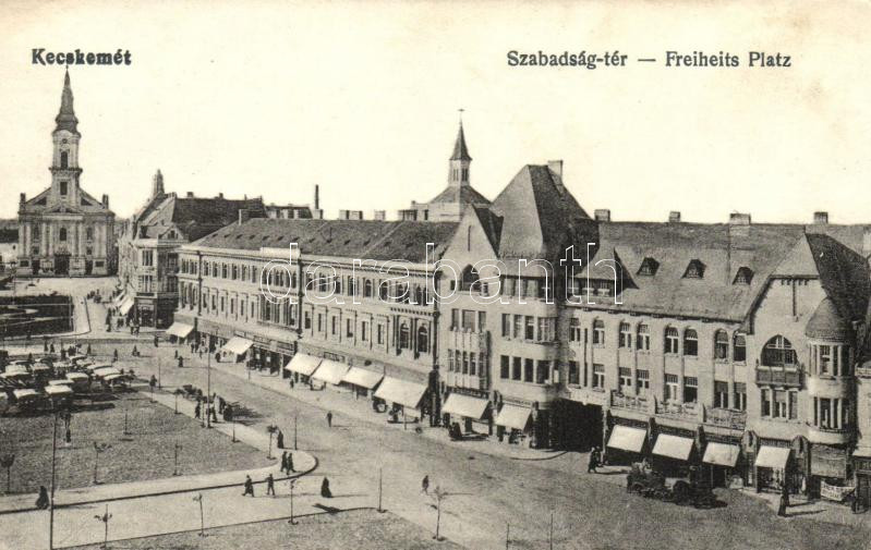 Leírás: Kecskemét, Szabadság tér, Eher Dávid, Csapó János, üzletei, drogéria, kiadja Fekete Soma
