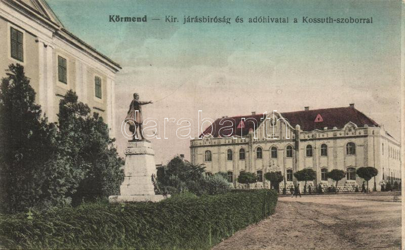 Körmend, Kir. Járásbíróság és adóhivatal, Kossuth szobor https://www.darabanth.com/hu/271-Gyorsarveres/271.0/Kepeslapok/Magyarorszag~200006/Kormend-Kir-Jarasbirosag-es-adohivatal-Kossuth-szobor~II1368342