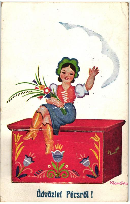 Leírás: Pécs, népies leporellolap s: Klaudinyi (EK)