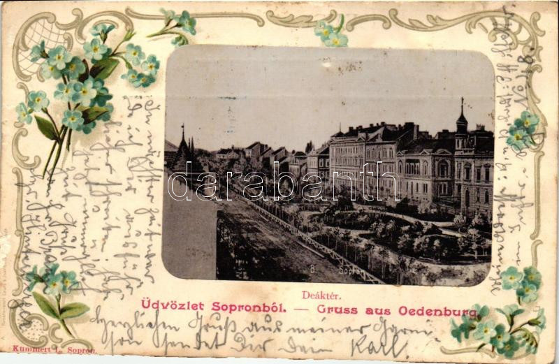 Sopron, Oedenburg; Deák tér, ragasztott fotó, floral, Art Nouveau lith... https://www.darabanth.com/hu/271-Gyorsarveres/271.0/Kepeslapok/Magyarorszag~200006/Sopron-Oedenburg-Deak-ter-ragasztott-foto-floral-Art-Nouveau-litho-Rb~II1376804