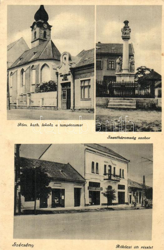 Szécsény, Római katolikus iskola, Rákóczi út, Szentháromság-szobor (áz... https://www.darabanth.com/hu/271-Gyorsarveres/271.0/Kepeslapok/Magyarorszag~200006/Szecseny-Romai-katolikus-iskola-Rakoczi-ut-Szentharomsag-szobor-azott-sarok-wet-corne~II1377960