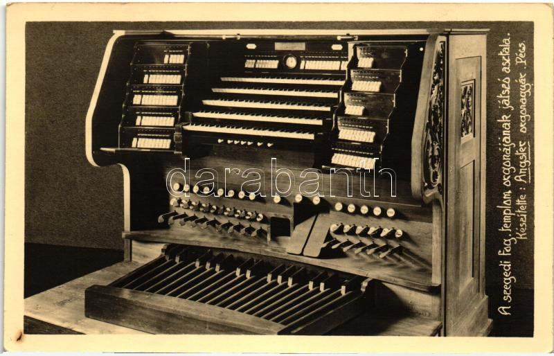 Szeged, Fogadalmi templom orgonájának játszóasztala; készítette Angste... https://www.darabanth.com/hu/271-Gyorsarveres/271.0/Kepeslapok/Magyarorszag~200006/Szeged-Fogadalmi-templom-orgonajanak-jatszoasztala-keszitette-Angster-orgonagyar-Pecs~II1376869
