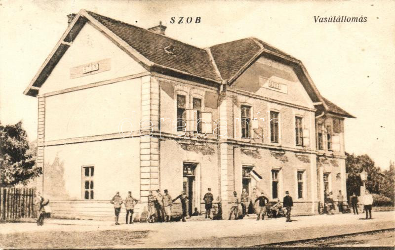 Szob, Vasútállomás, kiadja Hegedűs Lajos (fa) https://www.darabanth.com/hu/271-Gyorsarveres/271.0/Kepeslapok/Magyarorszag~200006/Szob-Vasutallomas-kiadja-Hegedus-Lajos-fa~II1371158