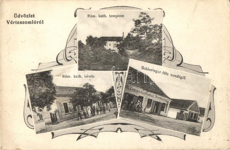 Vértessomló, Katolikus templom és iskola, Schlesinger Jakab vendéglője... https://www.darabanth.com/hu/271-Gyorsarveres/271.0/Kepeslapok/Magyarorszag~200006/Vertessomlo-Katolikus-templom-es-iskola-Schlesinger-Jakab-vendegloje-Art-Nouveau~II1379023