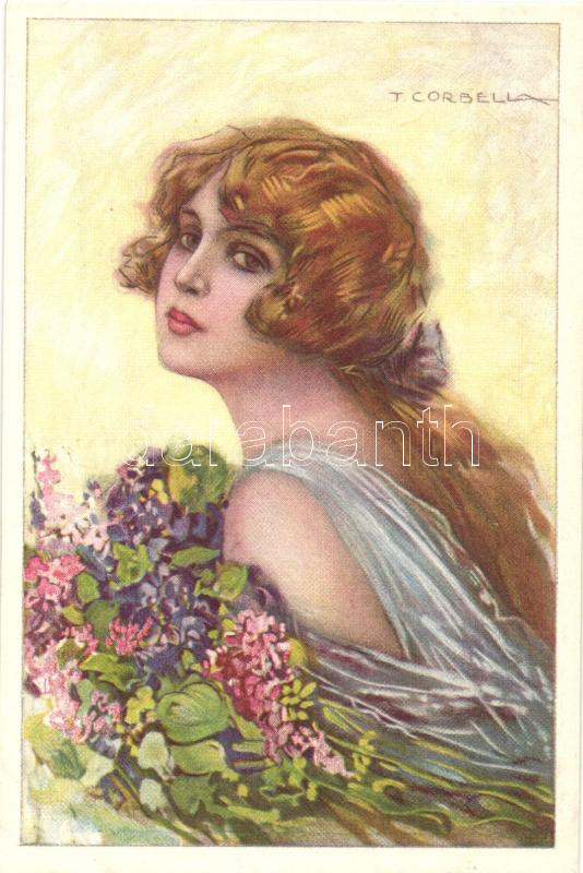 Leírás: Italian art postcard, girl with flowers, Anna & Gasparini 516-4 s: T. Corbella