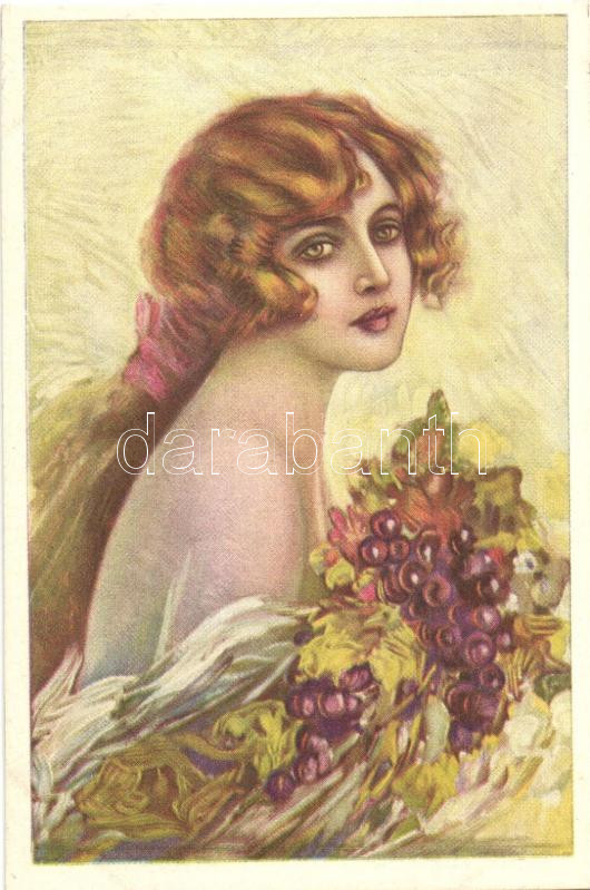 Leírás: Italian art postcard, girl with grapes, Anna & Gasparini 516-6 unsigned T. Corbella