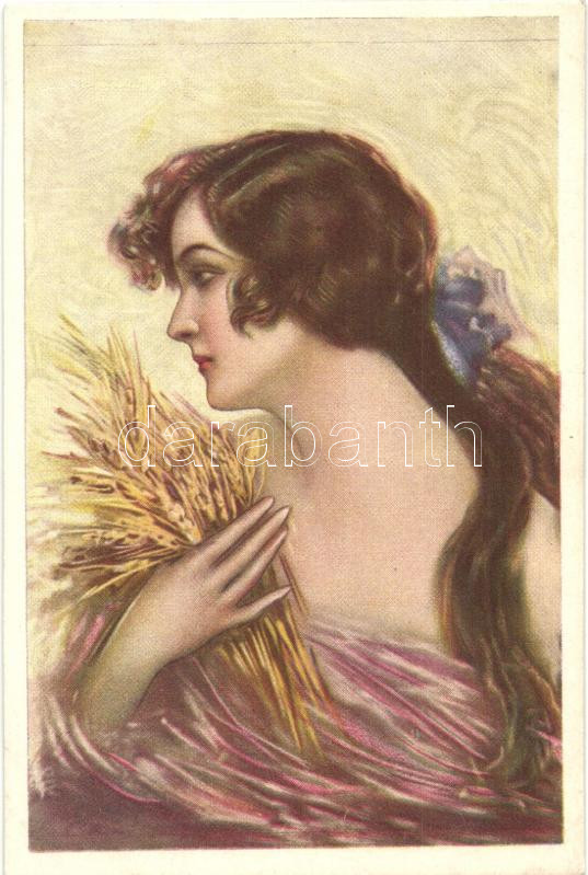 Leírás: Italian art postcard, girl with wheat, Anna & Gasparini 516-5 unsigned T. Corbella