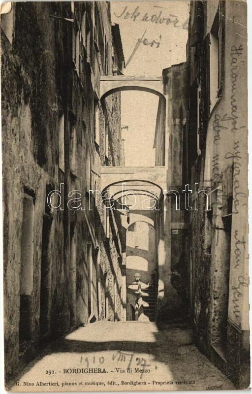 Bordighera, Via di Mezzo / street (EK) https://www.darabanth.com/hu/271-Gyorsarveres/271.0/Kepeslapok/Olaszorszag~200048/Bordighera-Via-di-Mezzo-street-EK~II1352539