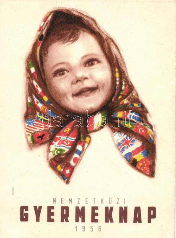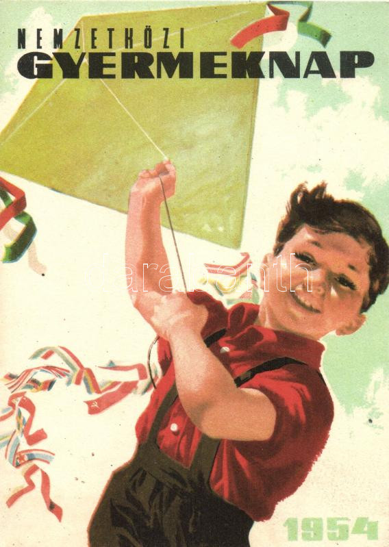 Nemzetközi Gyermeknap 1954, 1956, kiadja a Magyar Nők Demokratikus Szövetsége - 2 db megíratlan képeslap / International children's day 1954, 1956 - 2 unused Hungarian propaganda postcards, s: Repcze