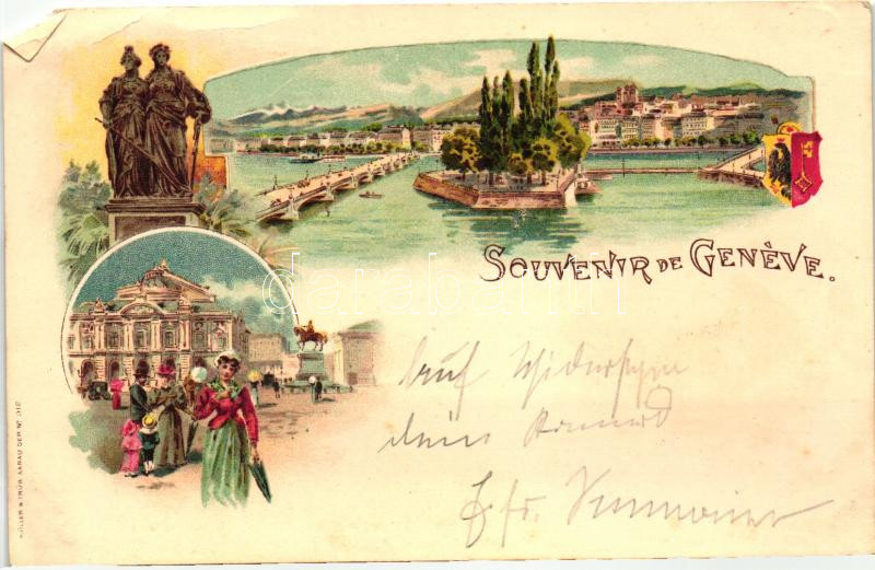 Leírás: Geneva, Geneve; monument, lady, litho (EB)