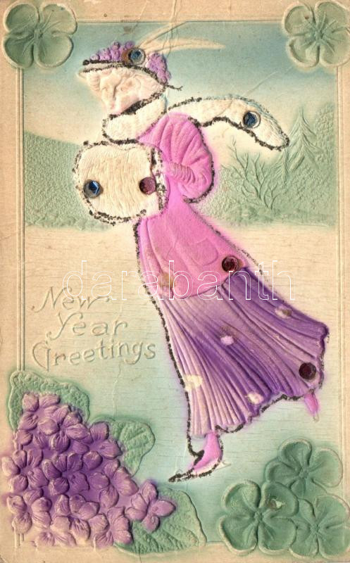New Year greeting card, ice skating lady, clover, Emb. (r) https://www.darabanth.com/hu/271-Gyorsarveres/271.0/Kepeslapok/Udvozlolapok-Unnepek~200094/New-Year-greeting-card-ice-skating-lady-clover-Emb-r~II1374261
