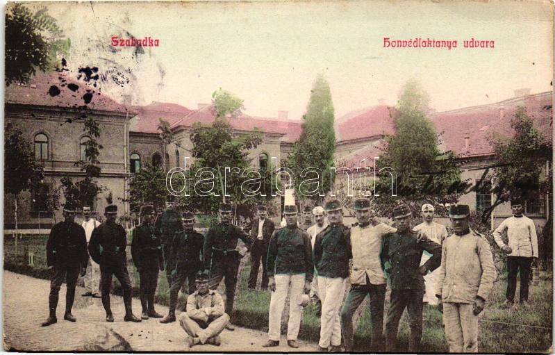 Szabadka, Subotica; Honvéd-laktanya udvara, csoportkép / military barr... https://www.darabanth.com/hu/271-Gyorsarveres/271.0/Kepeslapok/Vajdasag~200011/Szabadka-Subotica-Honved-laktanya-udvara-csoportkep-military-barrackks-courtyard-soldiers-g~II1376813