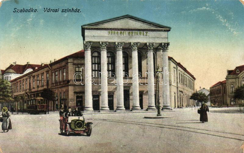 Szabadka, Subotica; Városi színház, villamos / theatre, automobile, tr... https://www.darabanth.com/hu/271-Gyorsarveres/271.0/Kepeslapok/Vajdasag~200011/Szabadka-Subotica-Varosi-szinhaz-villamos-theatre-automobile-tram-EK~II1369280