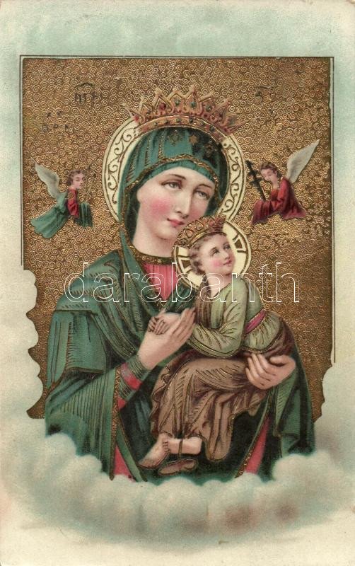Virgin Mary with Jesus, golden decoration Emb. litho (EK) https://www.darabanth.com/hu/271-Gyorsarveres/271.0/Kepeslapok/Vallas~200096/Virgin-Mary-with-Jesus-golden-decoration-Emb-litho-EK~II1341572